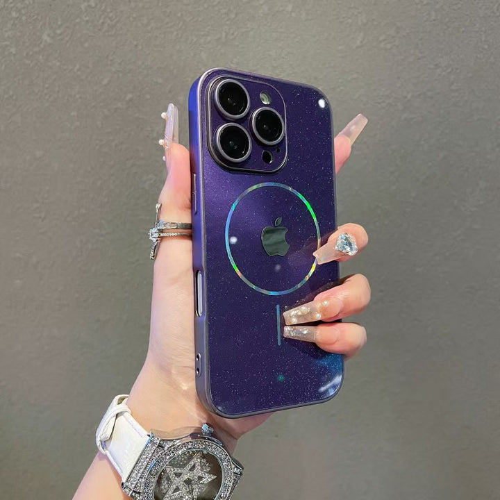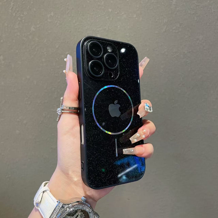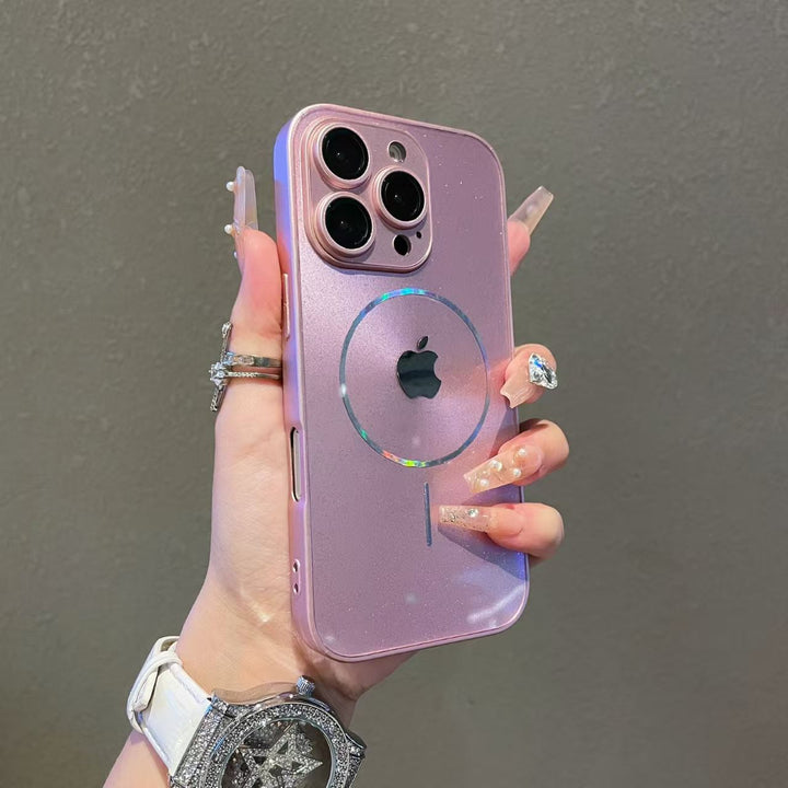 【Pink Sparkling Magnetic Phone Case】Pink and gold glitter + eye-catching Apple logo cutout design instantly turns your phone into a "mobile spotlight." Full protection: Complete camera coverage + precise magnetic positioning (compatible with MagSafe chargers).