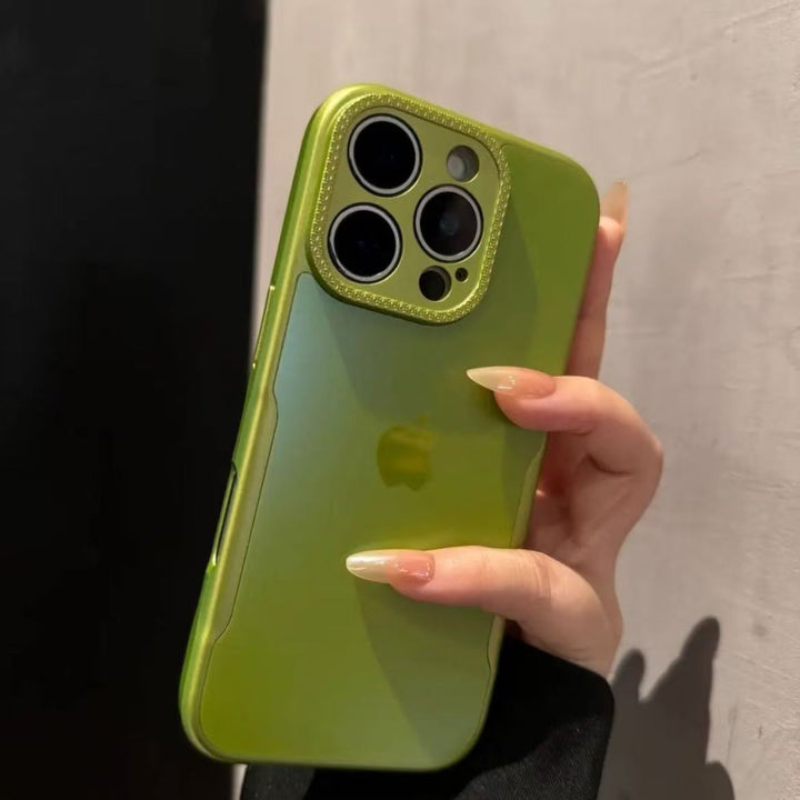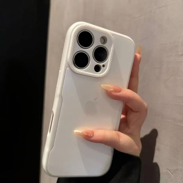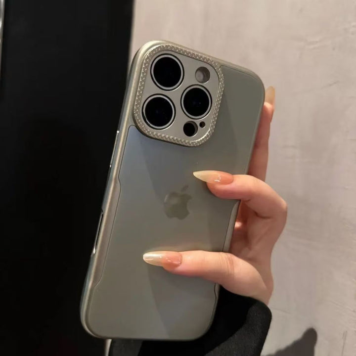 The light pink semi-transparent back panel reveals the brand logo, maintaining the premium feel of the bare device; the lens ring is inlaid with sparkling diamonds and edged with rose gold, enhancing the sweet and delicate style; the soft edges and raised lens design provide both shock protection and a precise fit.
